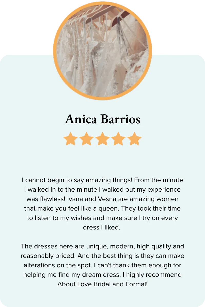 For gowns over $1,000, we offer flexible payment plans—just 50% down to order or hold, with up to 60 days to pay the balance.
